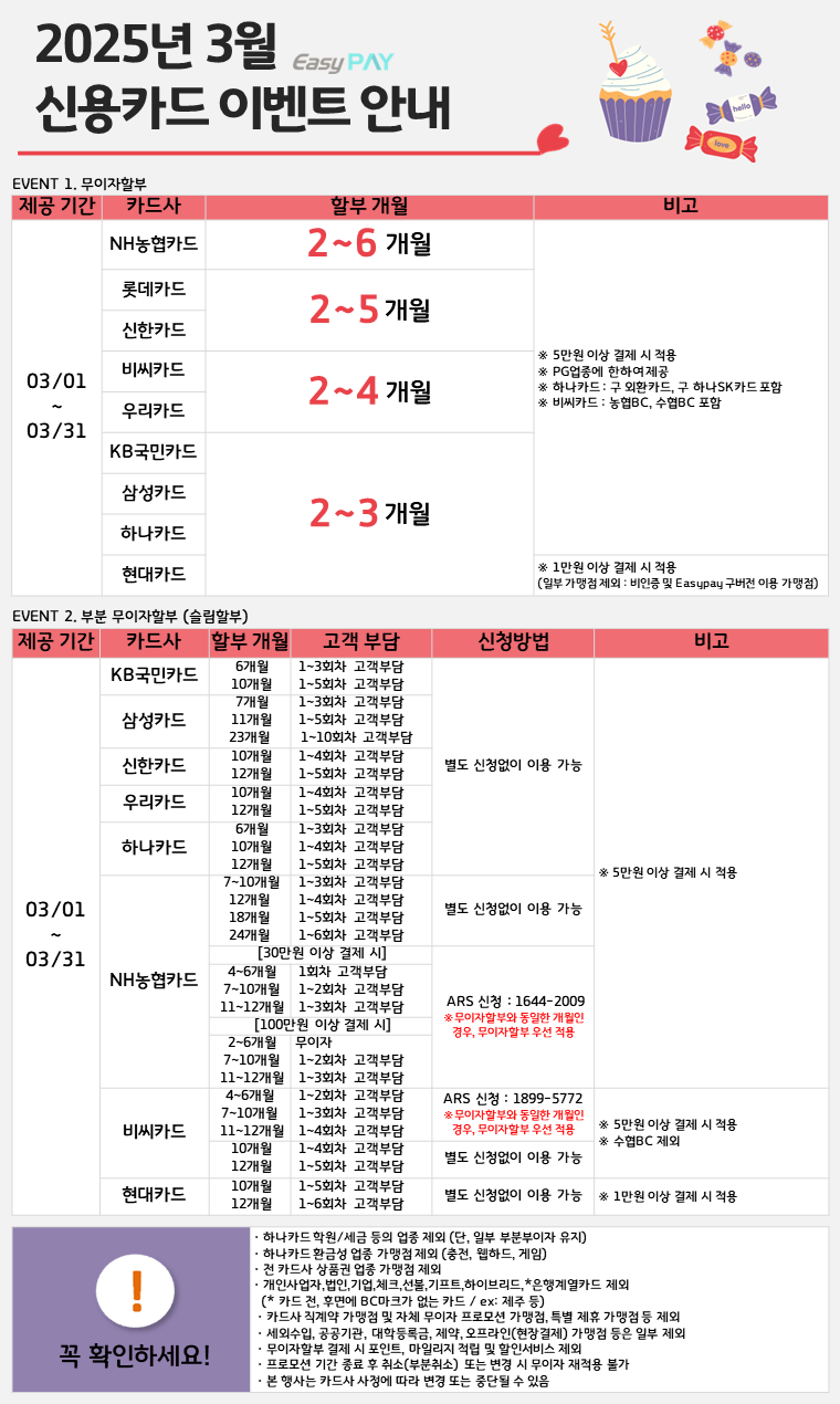 공지 2025년 3월 신용카드 무이자 및 부분 무이자 이벤트 안내